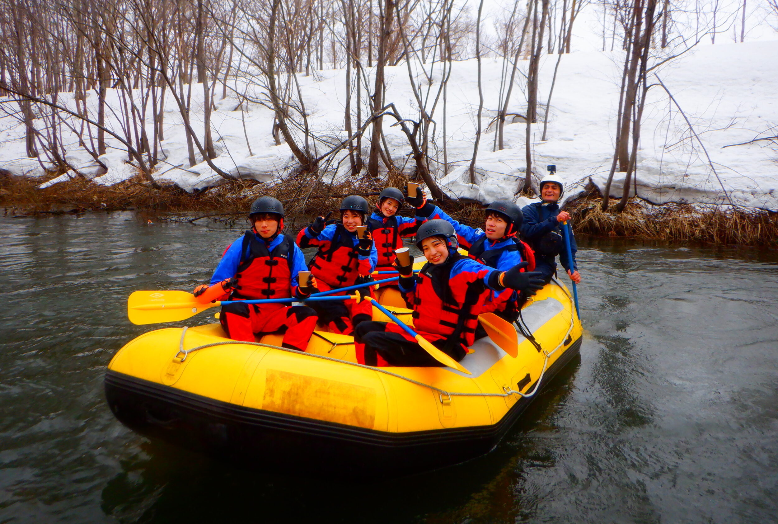 今年初の春の激流コースラフティングのお客様は元気な学生さん達でした~☺